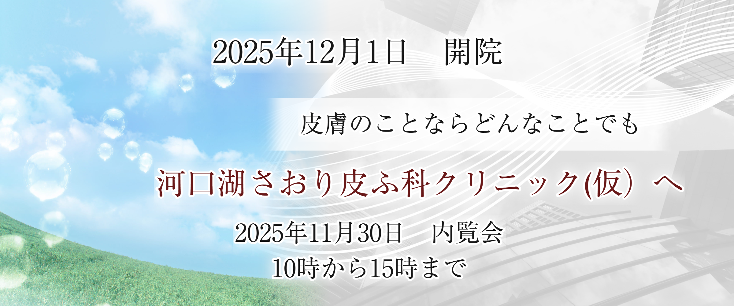 河口湖周辺には、皮膚科クリニックが少なく、お困りの方がたくさんおられました。地域のかかりつけ医になるべく、開院する運びとまりました。