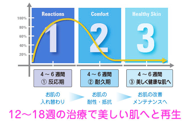 ※ハイドロキノンとトレチノインは急に中止せず、少しずつ塗る回数を減らしていきます。