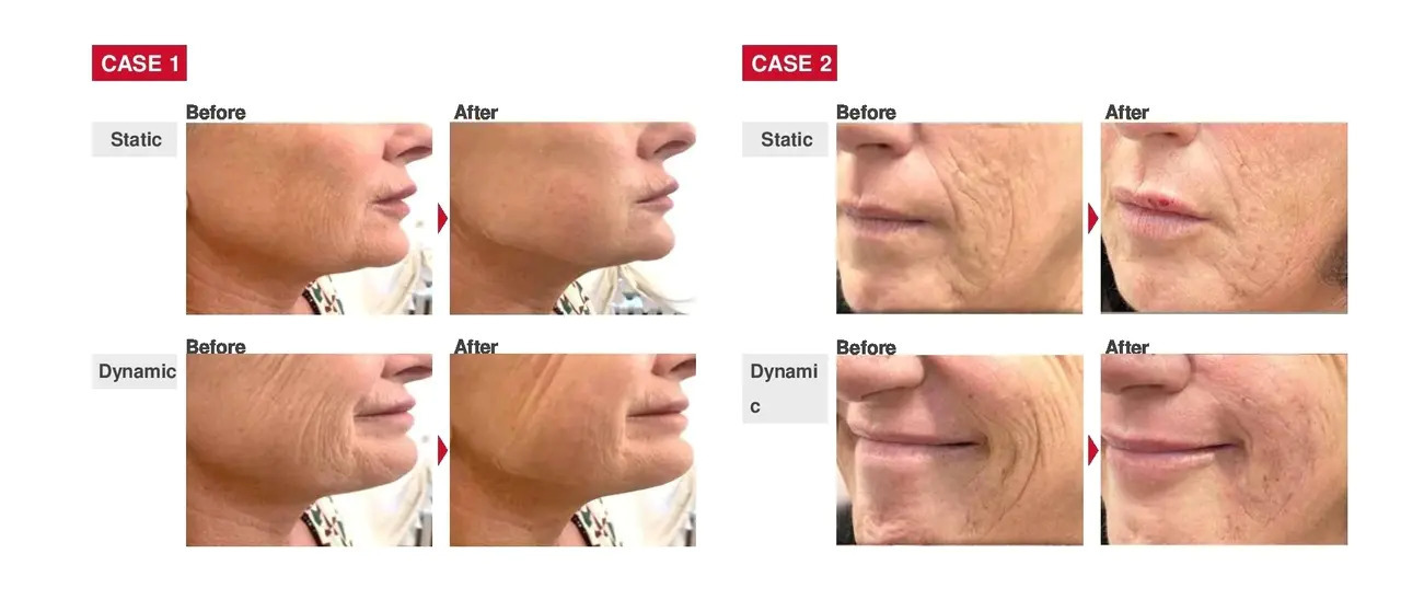 特に口横のカーテンジワ、額や首の横ジワ、唇の縦ジワの改善に効果的です!!
