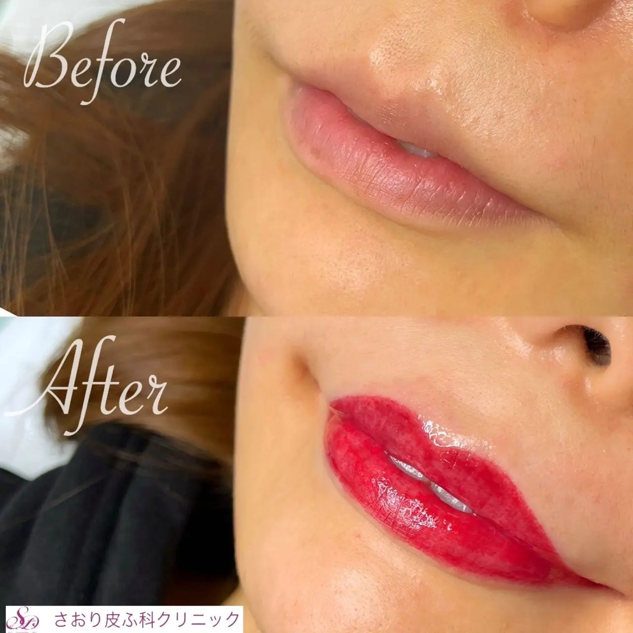 リップ:当院はリップ全体に色を入れるフルリップのみとなります。入れた直後は濃い状態ですが、時間の経過とともになじんでいきます。たくさんあるお色から、お肌の色や、ご希望に応じて色を作っていきます。