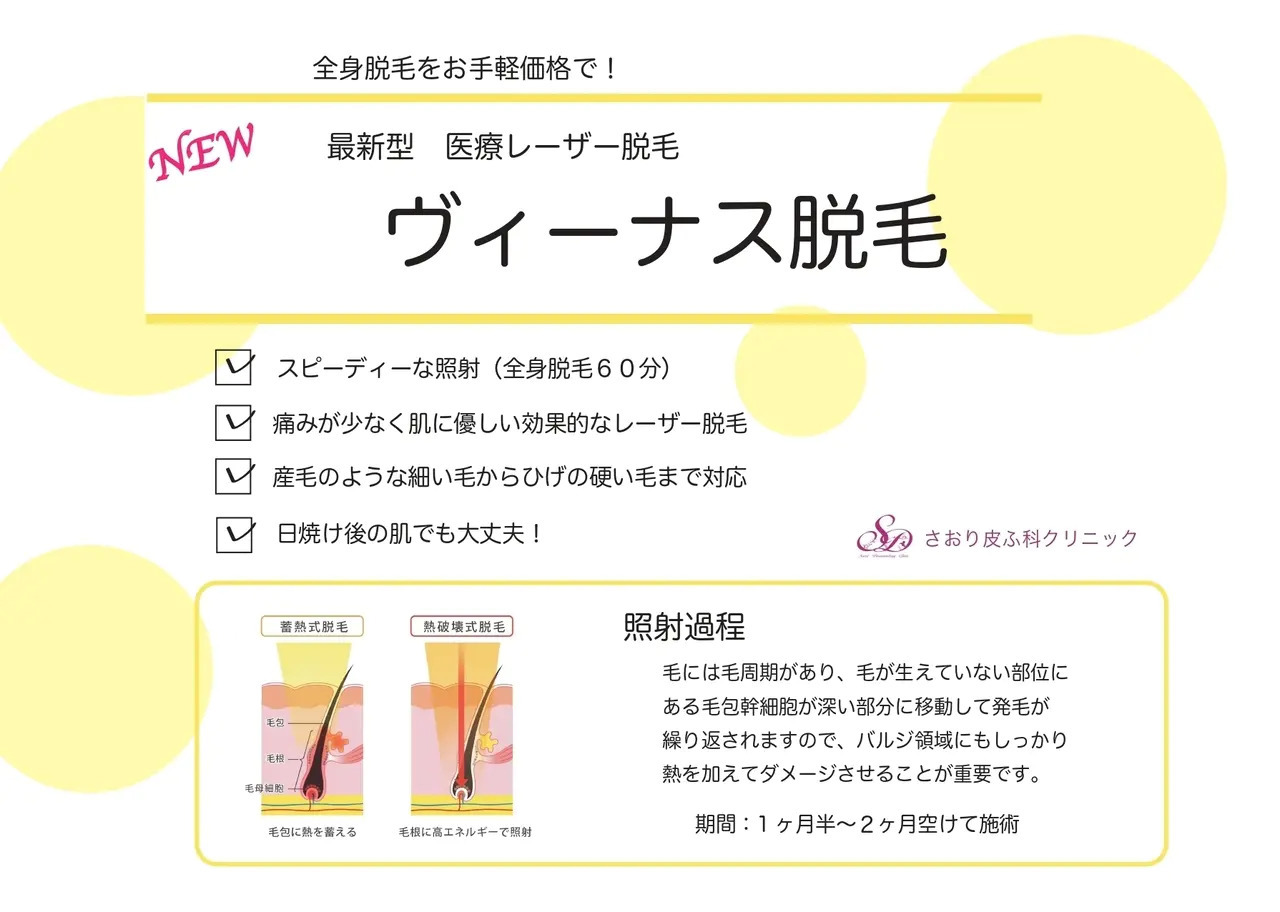 最新の医療レーザー脱毛機器『VENUS ONE』を導入致しました。
