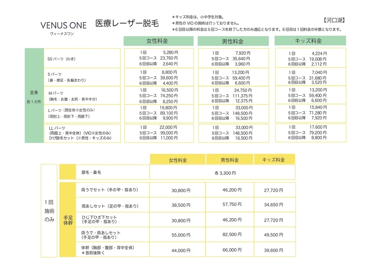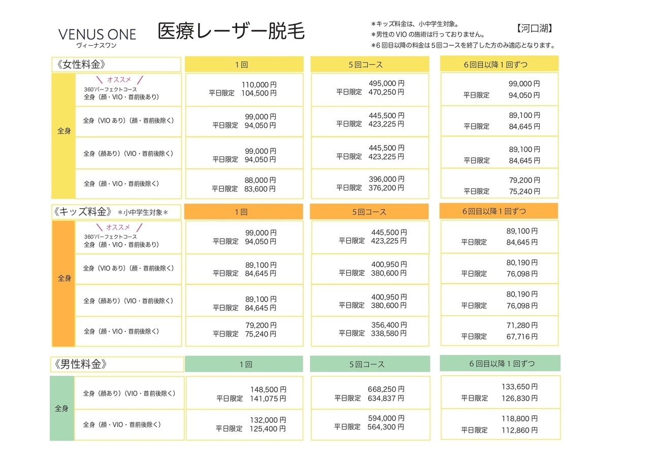永久脱毛まで、6.7回が平均とされていますので、5回コースがおすすめです。また、5回コースの方は、6回目以降の料金をお安く設定しております。