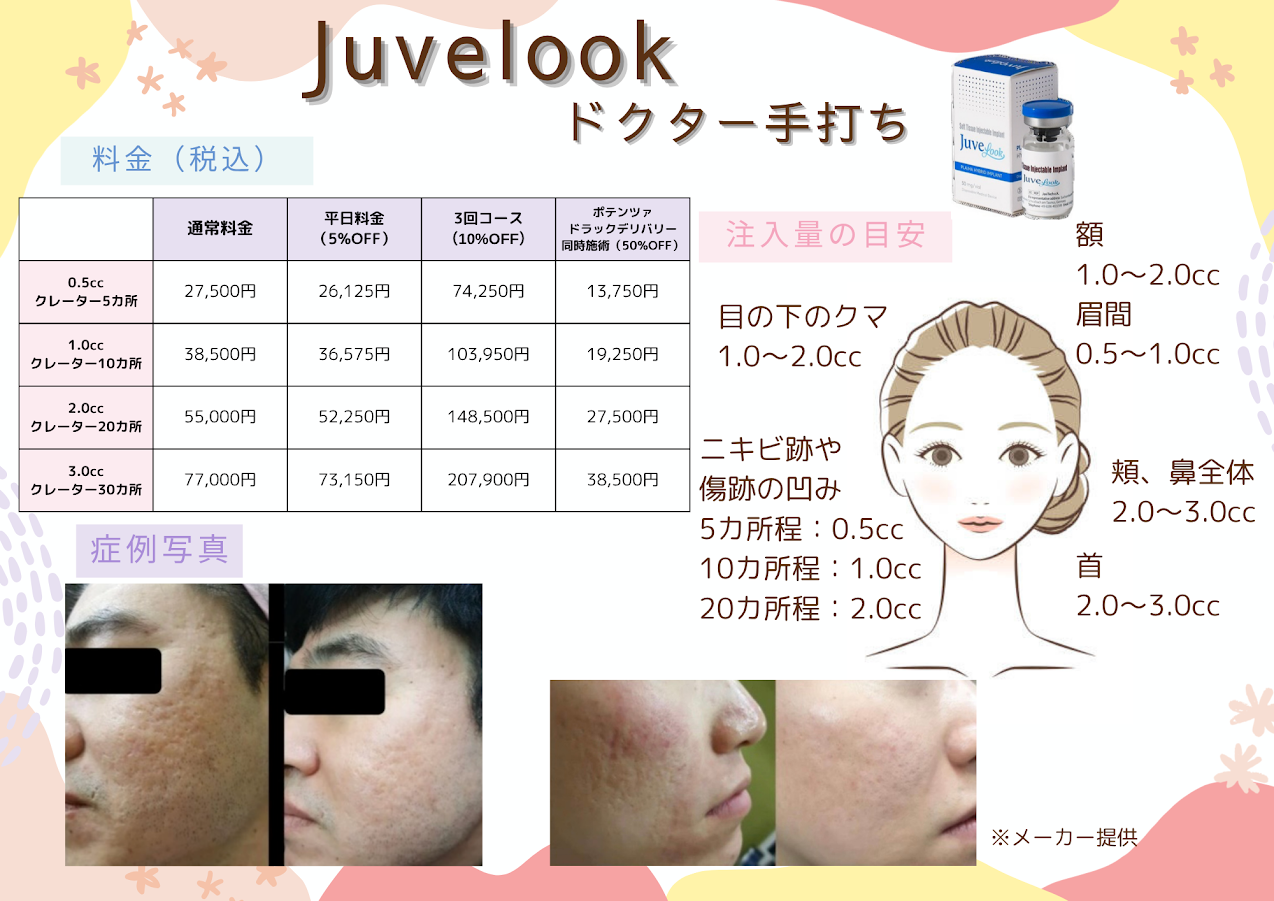 ジュベルック(Juvelook)は、ポリ乳酸(PDLLA)という成分・非架橋ヒアルロン酸製剤を合わせて使用する次世代型の注入剤です。