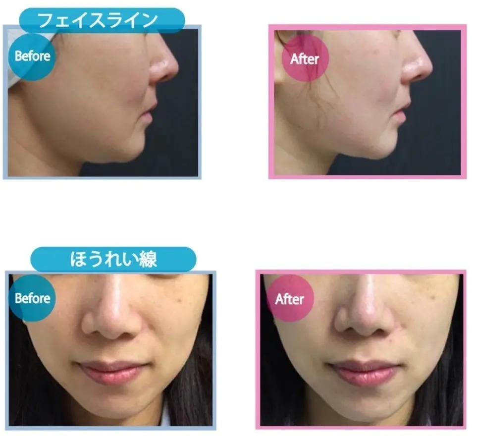 ダウンタイム 副作用 | 赤みや腫れ、浮腫、痛み、違和感、筋肉痛、神経周囲を刺激すると痺れる等の違和感などが一時的な反応として生じ、数日残る可能性があります。稀な副作用として、膨隆、水疱形成、痂疲形成、色素沈着、皮下出血、顔面神経障害などが生じる可能性があります。 |